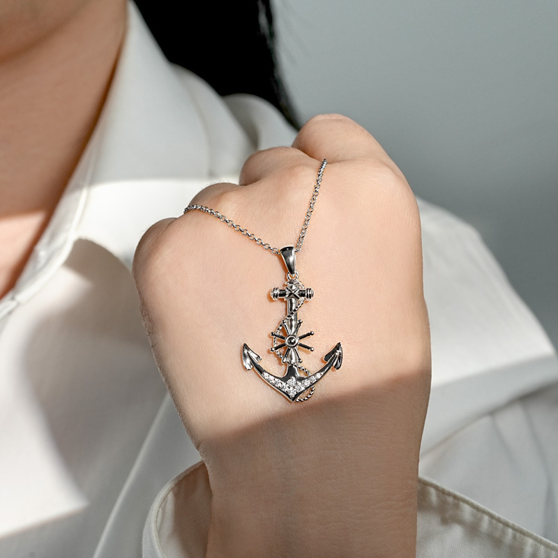 【莫桑鑽】勇敢的航海家男女同款船錨S925銀鍍金項鏈45+5CM