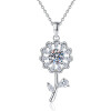 【莫桑鑽】太陽花1克拉四爪圓鑽S925銀鍍鉑金項鏈