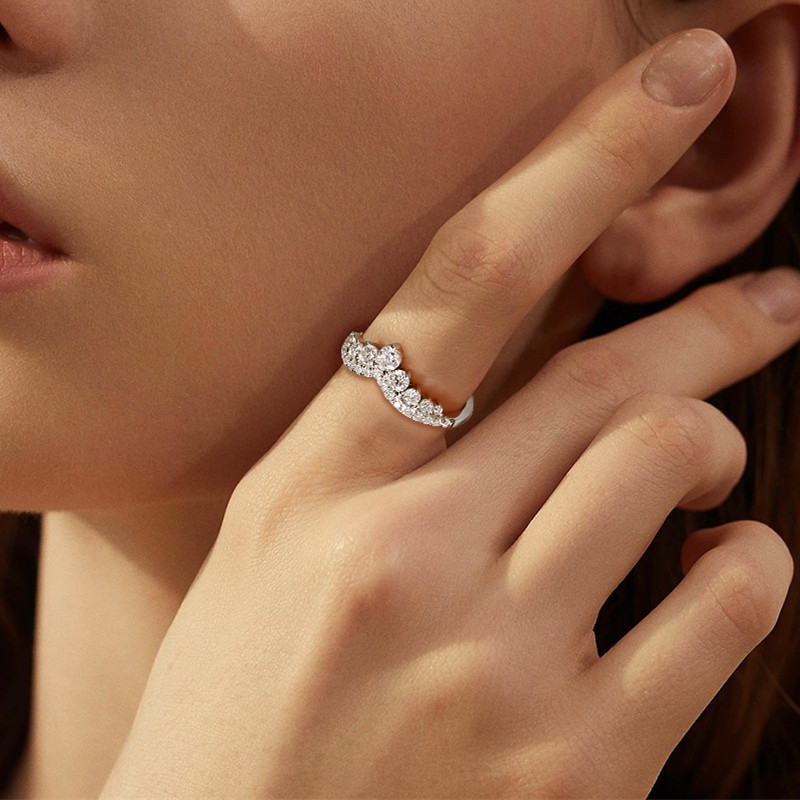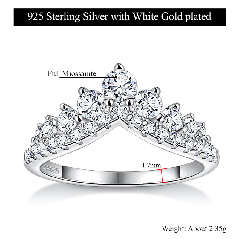 【莫桑鑽】皇冠V型排戒S925銀鍍白金戒指