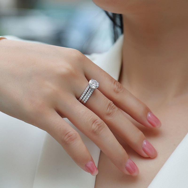 【莫桑鑽】2克拉主鑽三合一組合戒臂S925銀鍍白金戒指
