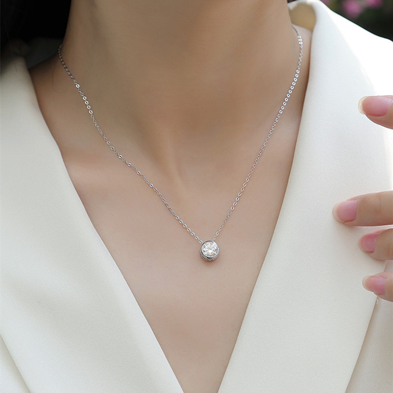 【莫桑鑽】1克拉小泡泡圓包S925鍍白金項鏈