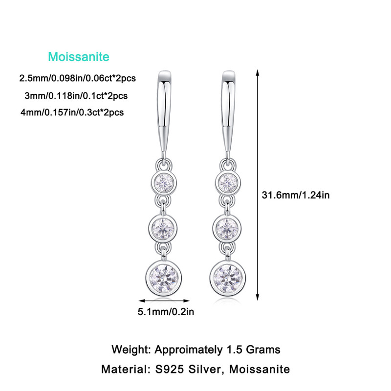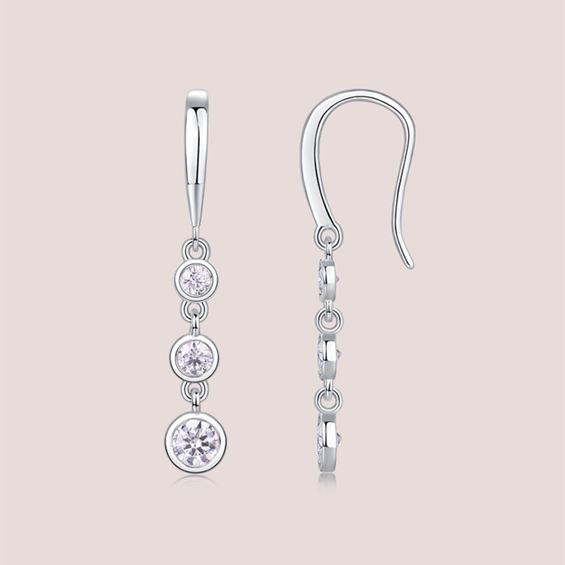【莫桑鑽】三顆小泡泡31mm長款S925銀鍍白金耳環