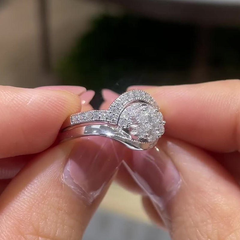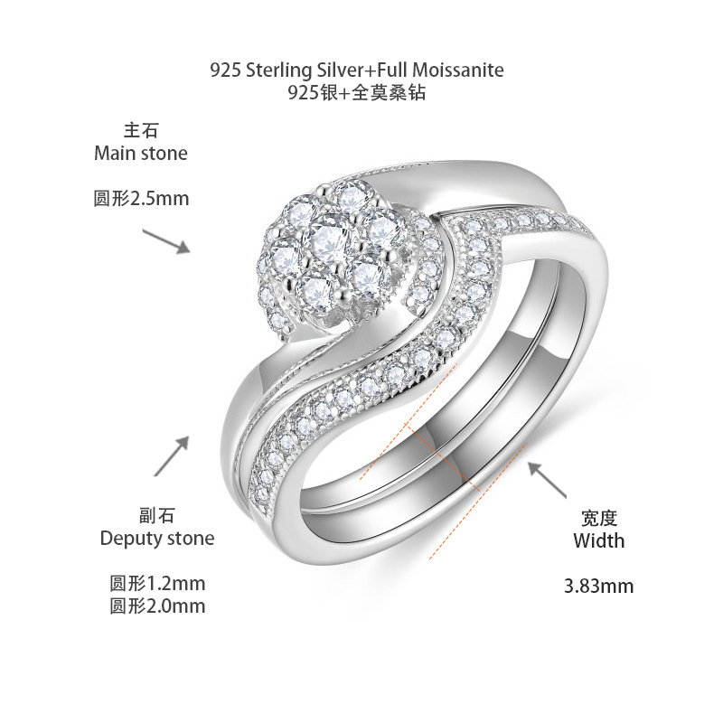 【莫桑鑽】二合一雪花排戒叠戴S925银镀白金戒指