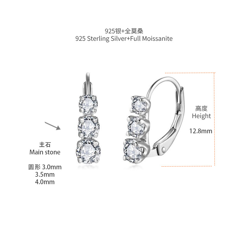 【莫桑鑽】1.4ctINS風三石S925銀鍍金耳環