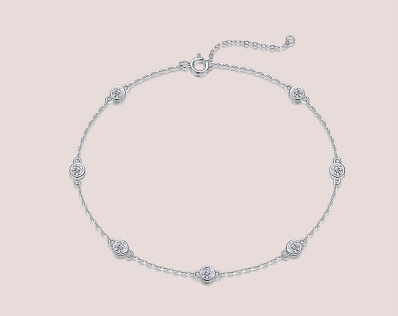 【莫桑鑽】七顆小泡泡單顆10分S925銀鍍白金手鏈17+4CM