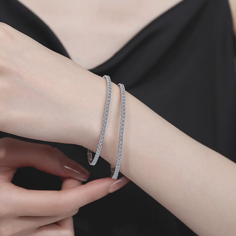 【莫桑鑽】彈力版滿鑽10分3mm排鑽S925銀鍍鉑金手鏈