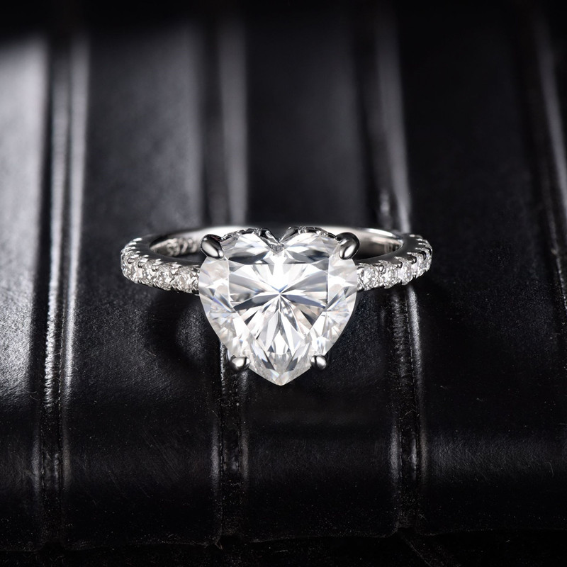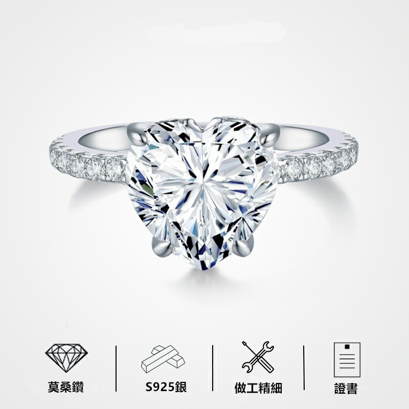 【莫桑鑽】3.5克拉愛心型鑽52分戒臂S925銀鍍白金戒指