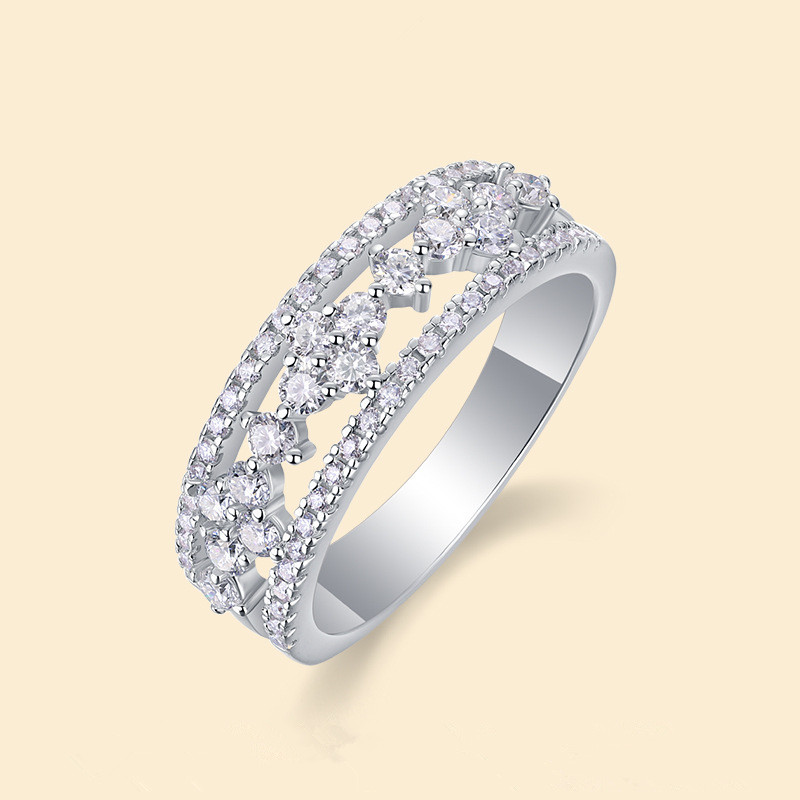 【莫桑鑽】小圓鑽四葉草S925銀鍍白金戒指