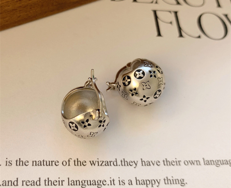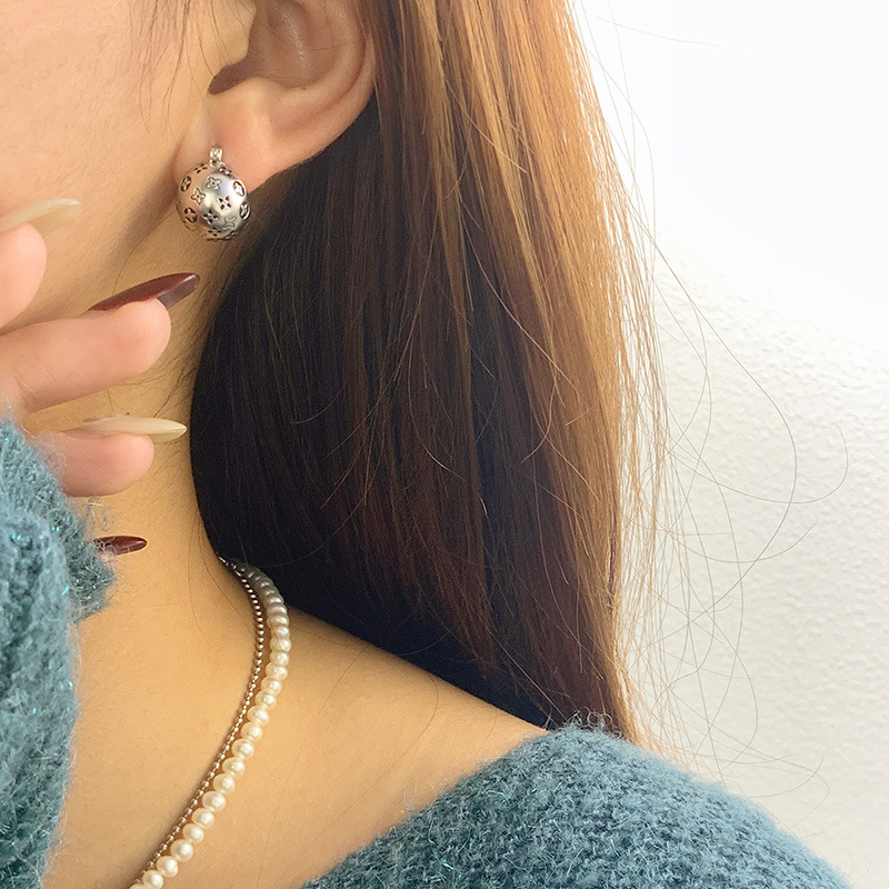 【S925銀】復古四葉草圓球耳環