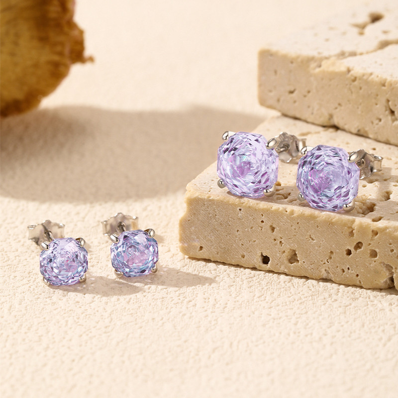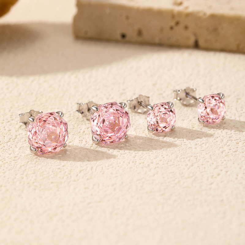 【S925銀】法國玫瑰十種顏色超閃5A級鋯石耳環
