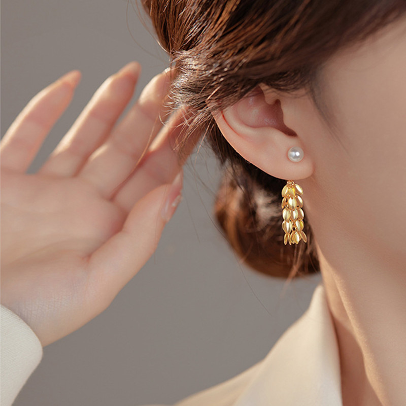 【S925銀】麥穗流蘇貝珠耳環