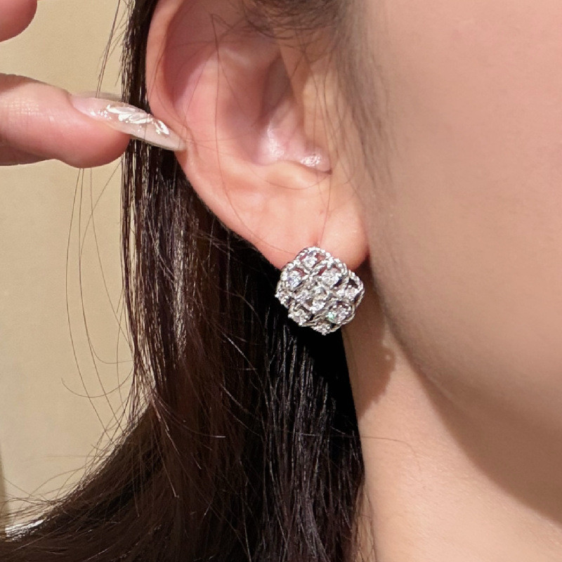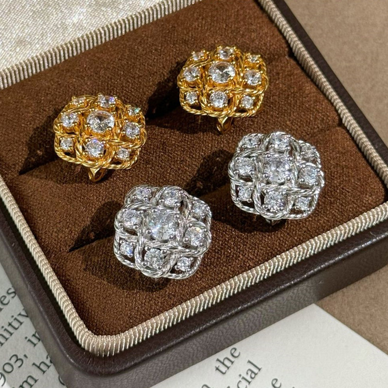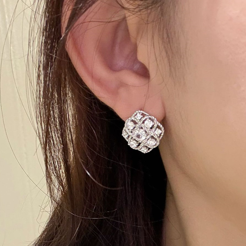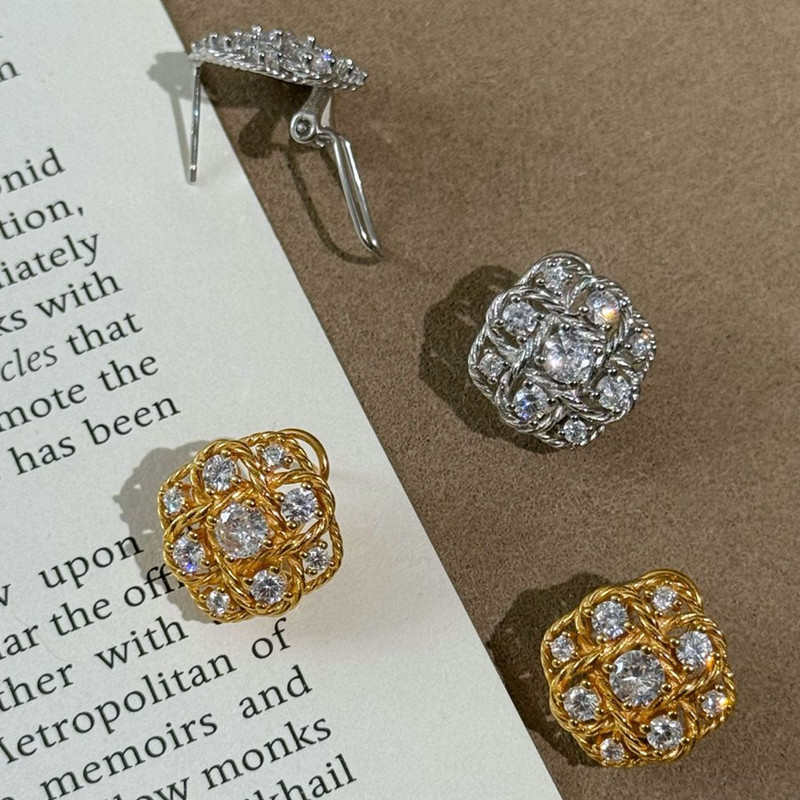【S925銀】中古風閃鑽菱格重工編織耳環