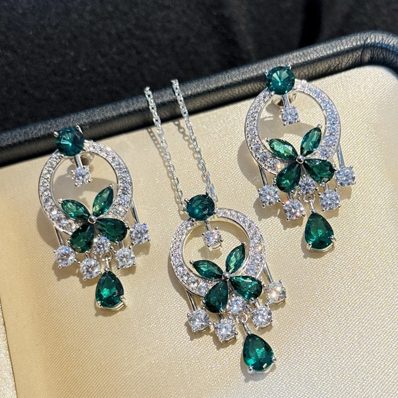 【S925銀】培育祖母綠花園蝴蝶項鏈/耳環 數量
