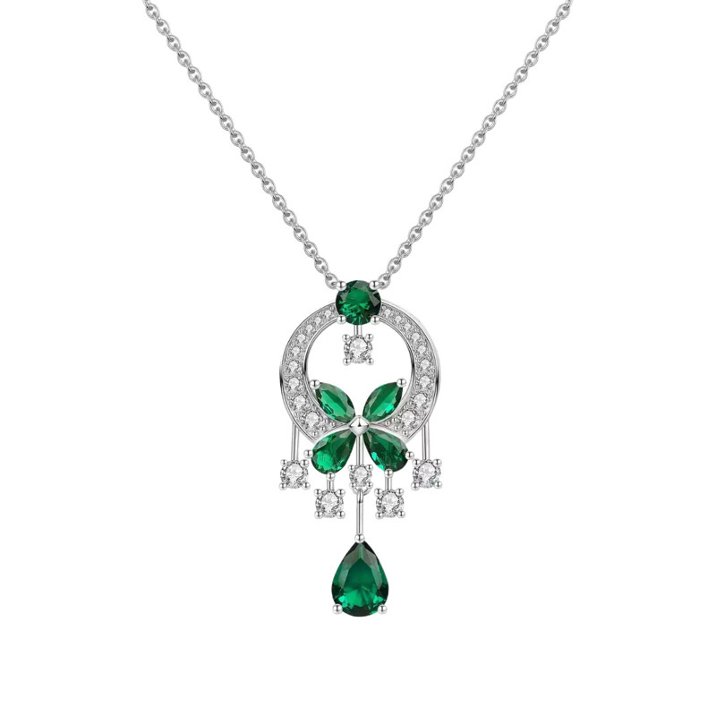【S925銀】培育祖母綠花園蝴蝶項鏈/耳環