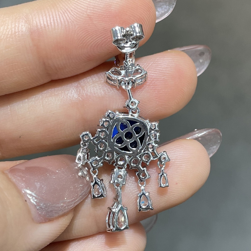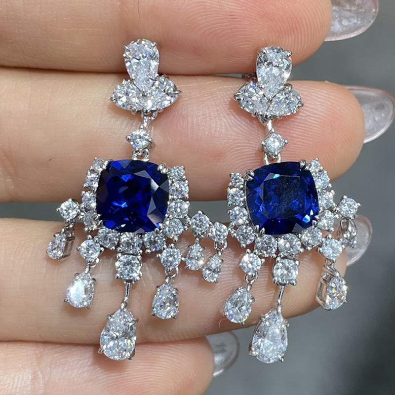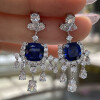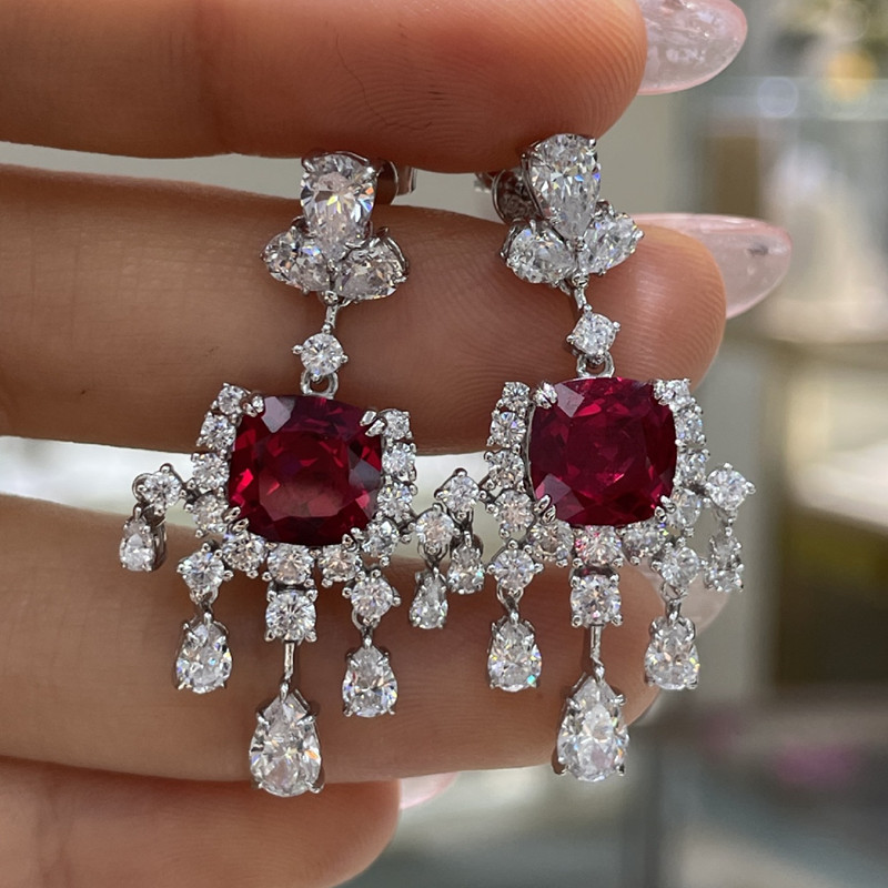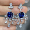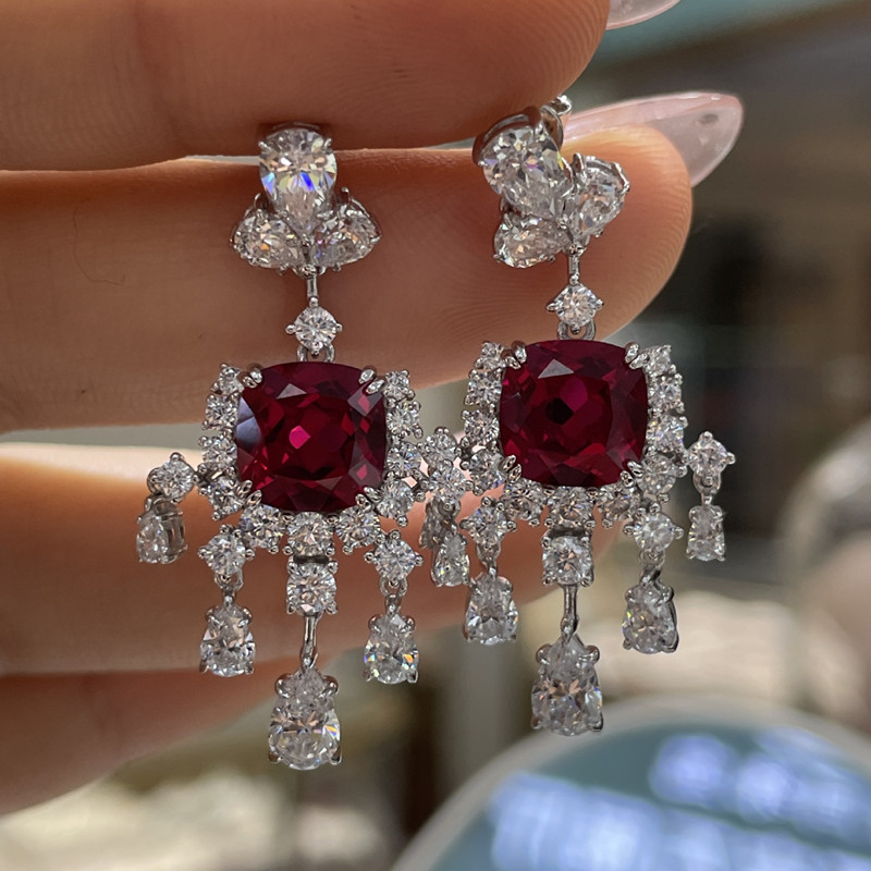 【S925銀鍍白金】2.5克拉+2.5克拉8*8mm培育紅寶石藍寶石流蘇耳環