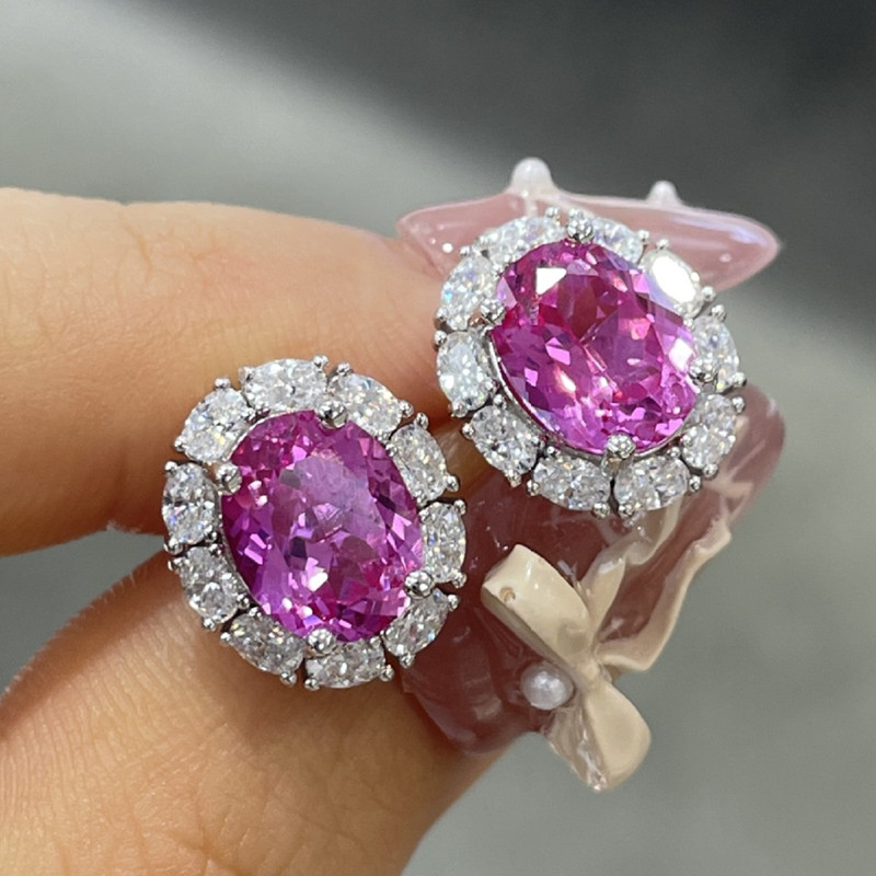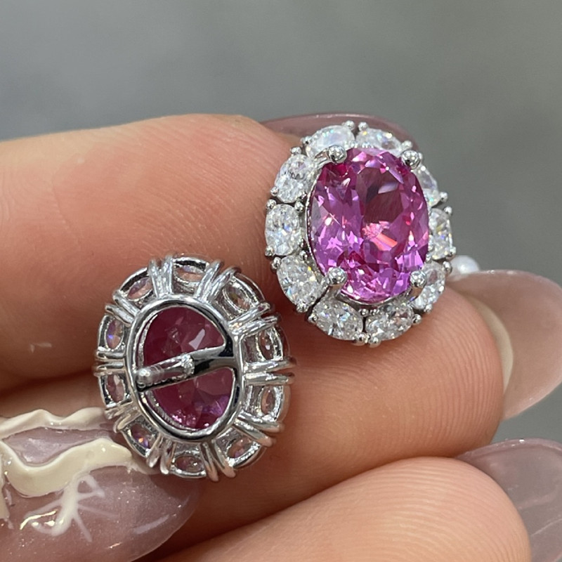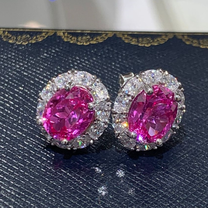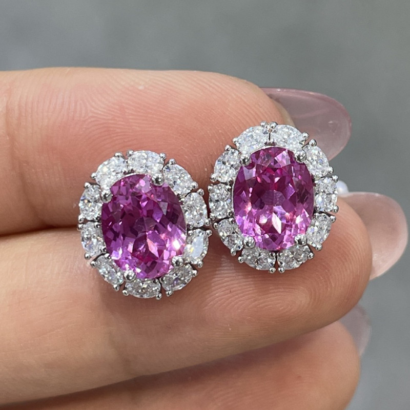 【S925銀鍍白金】2克拉+2克拉培育粉藍色7*9mm蛋型圍鑲耳環