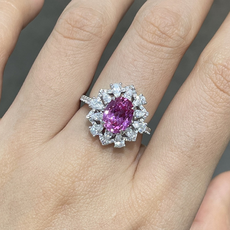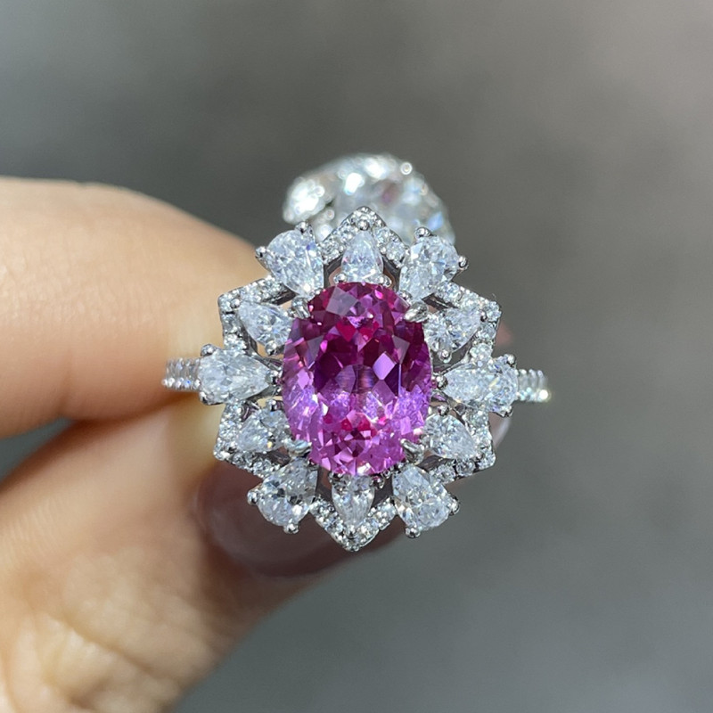 【S925銀鍍白金】2克拉培育粉藍色7*9mm蛋型圍鑲戒指