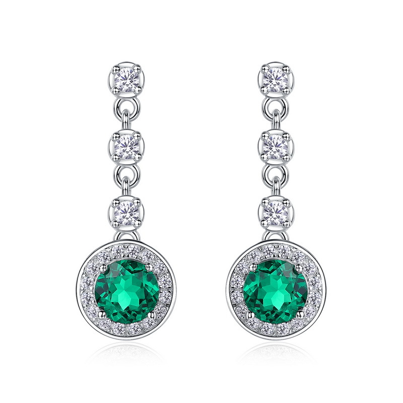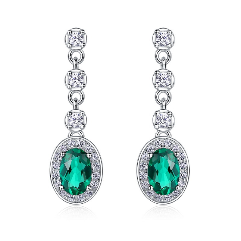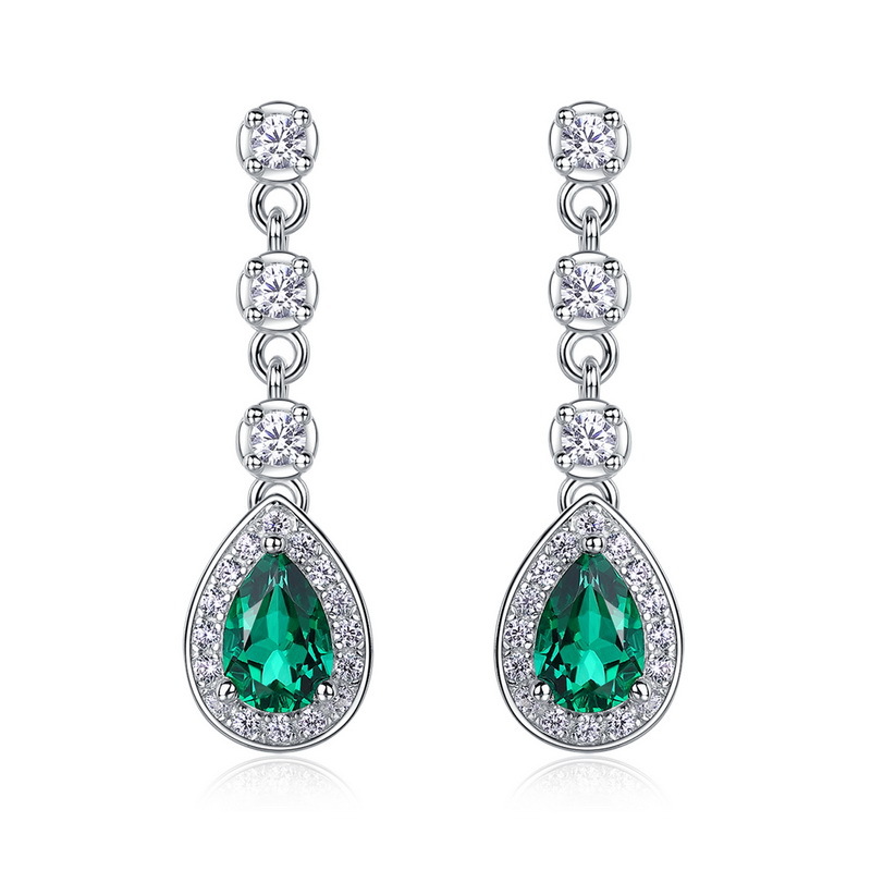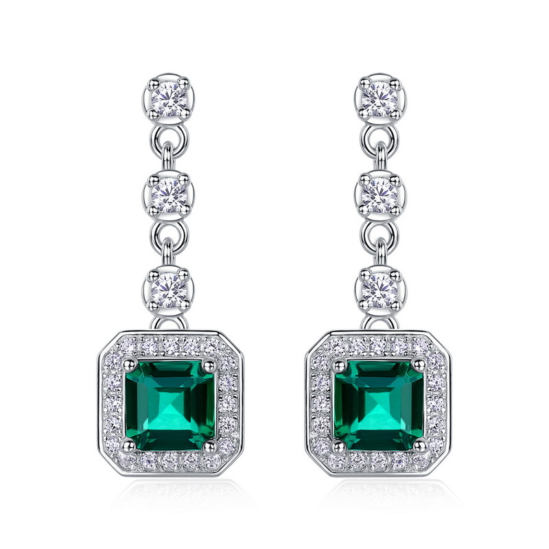 【培育祖母綠】五種形狀三鑽流蘇S925銀鍍白金耳環