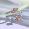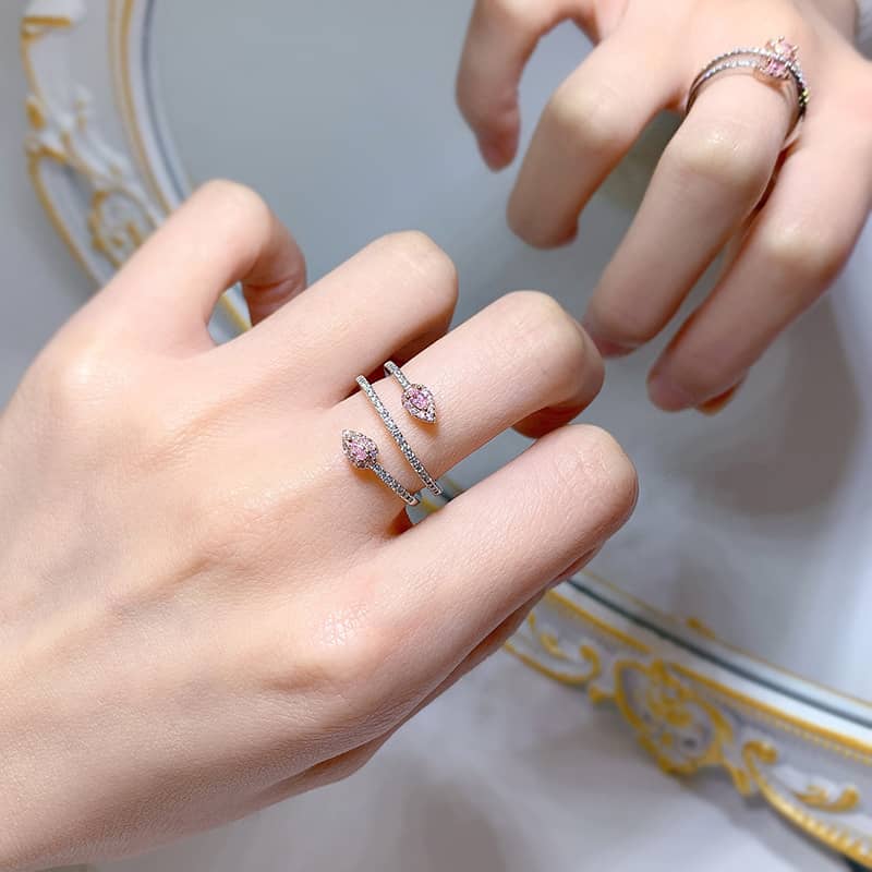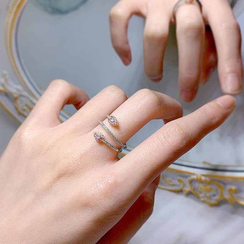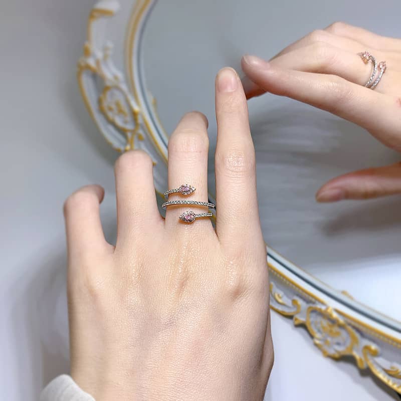【高碳鑽】粉色蛇形纏繞S925銀鍍白金戒指