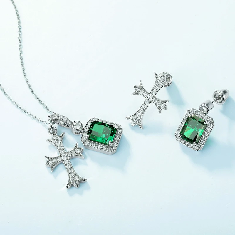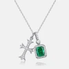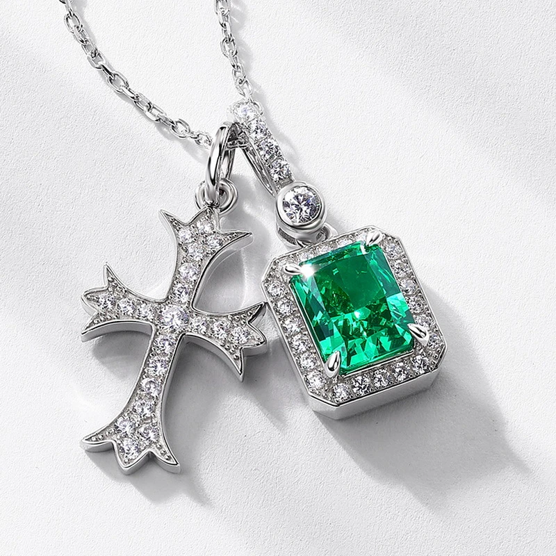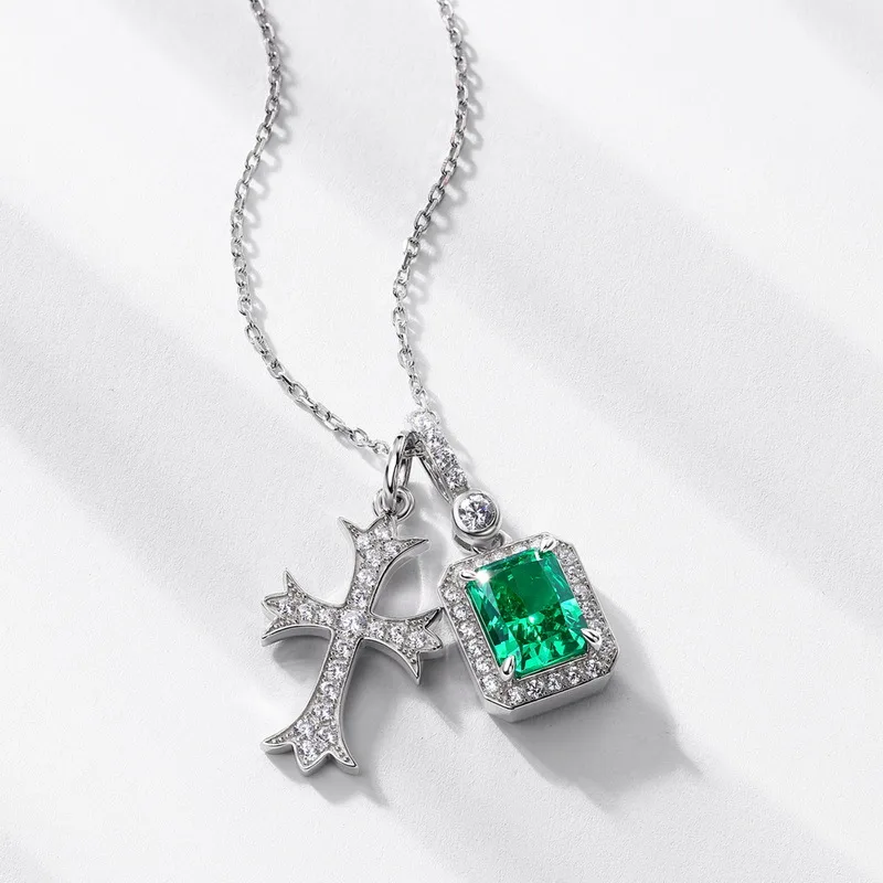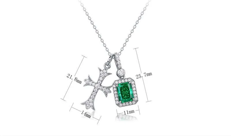 【S925銀鍍金】明星同款十字架祖母綠切高碳鑽項鏈