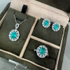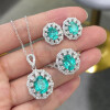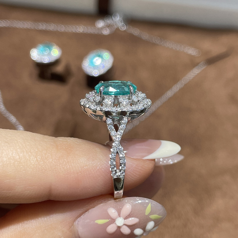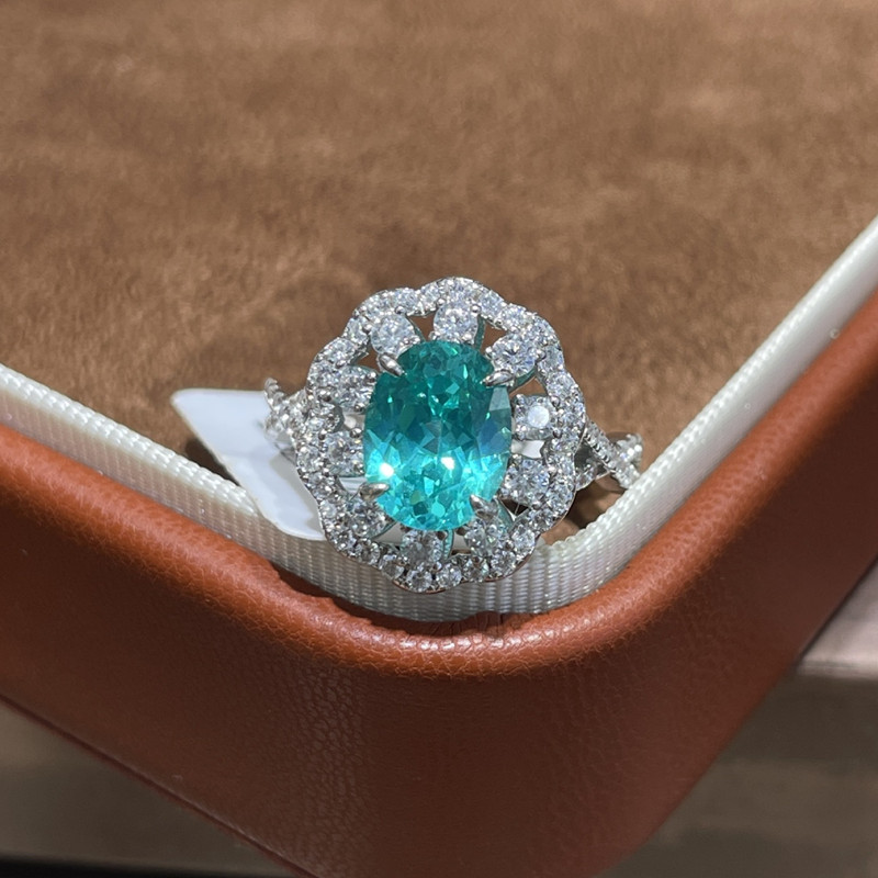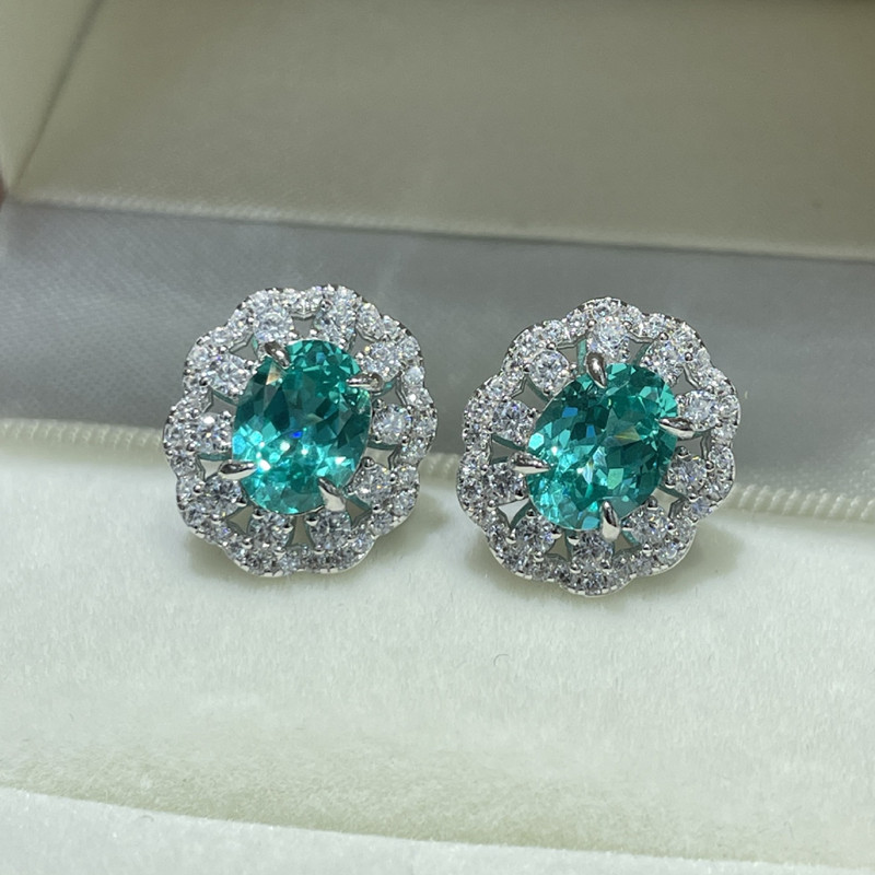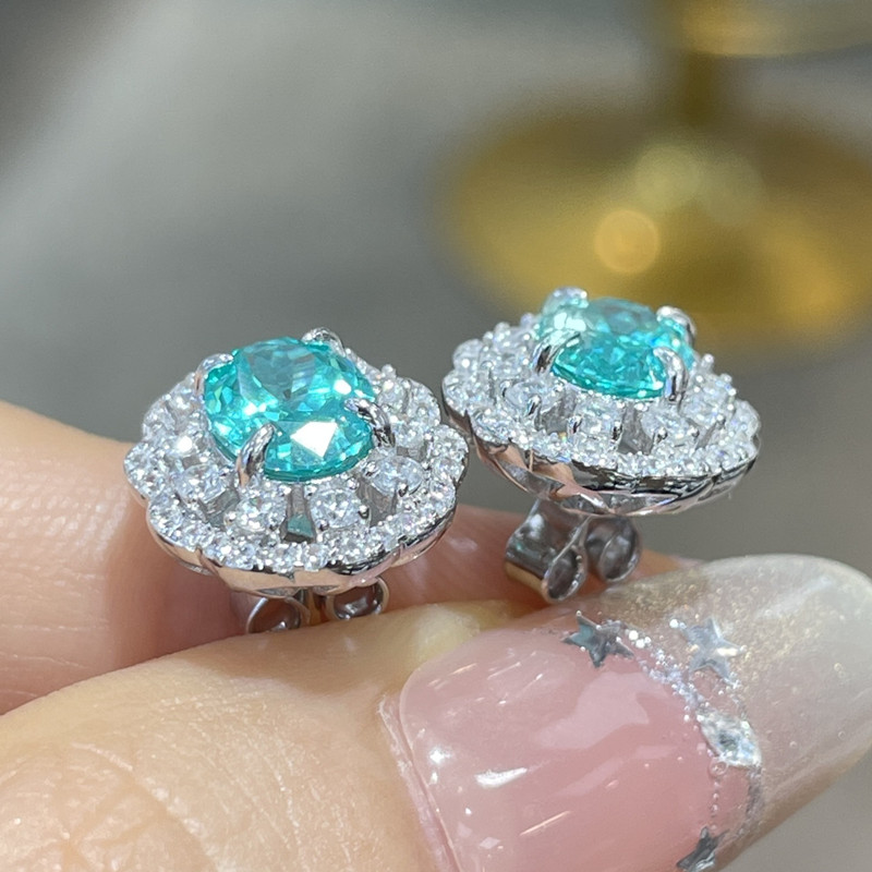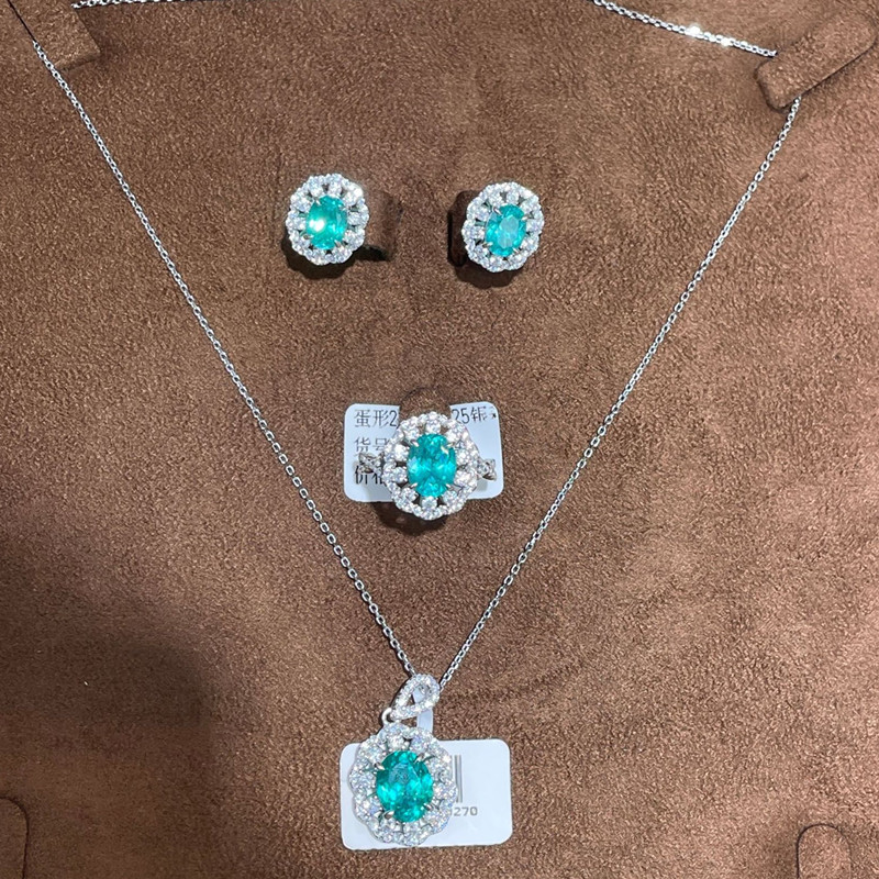 【S925銀鍍白金】小花花培育帕拉伊巴高碳鑽3卡項鏈/1.5卡*2耳環/2卡戒指