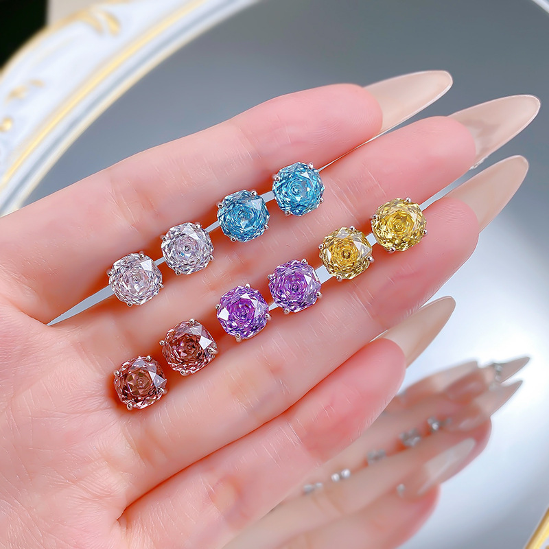 【S925銀鍍白金】2.5克拉千禧玫瑰切八邊形彩鋯耳環