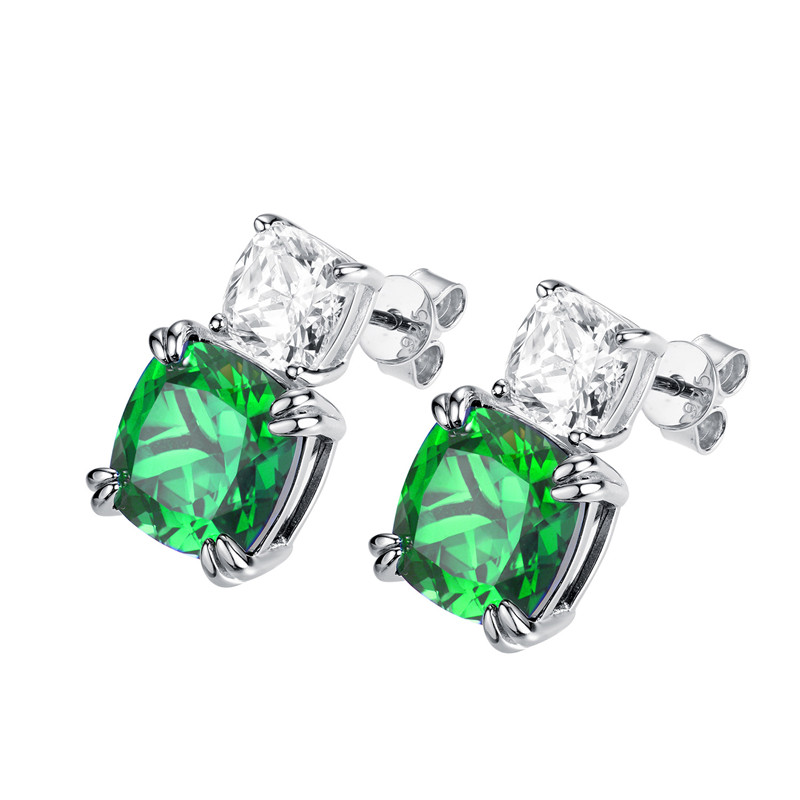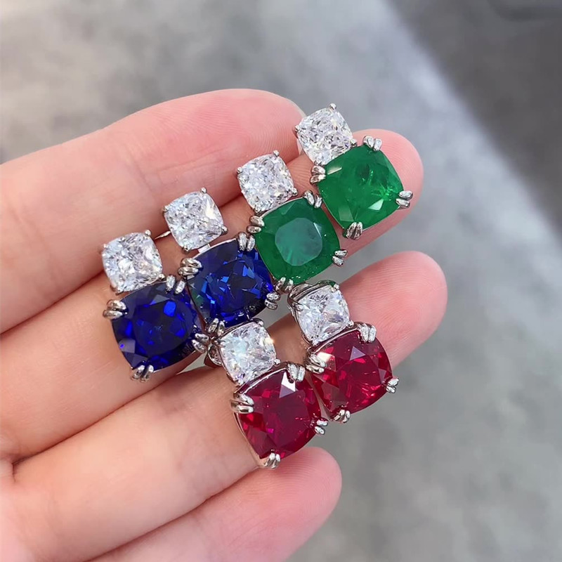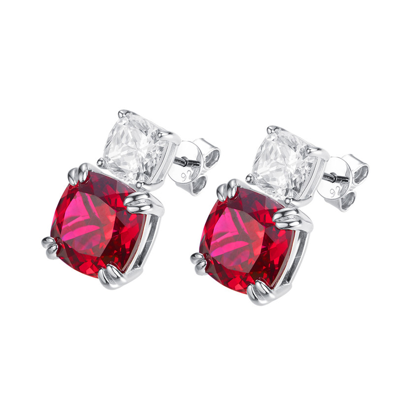 【S925銀鍍白金】培育紅寶石藍寶石10*10mm方形耳環
