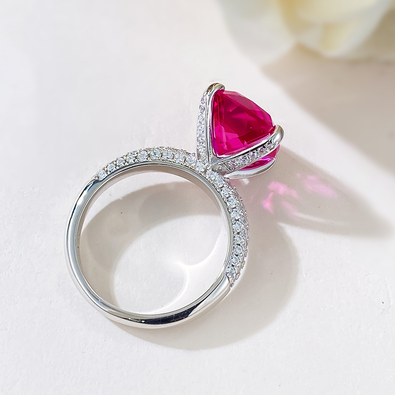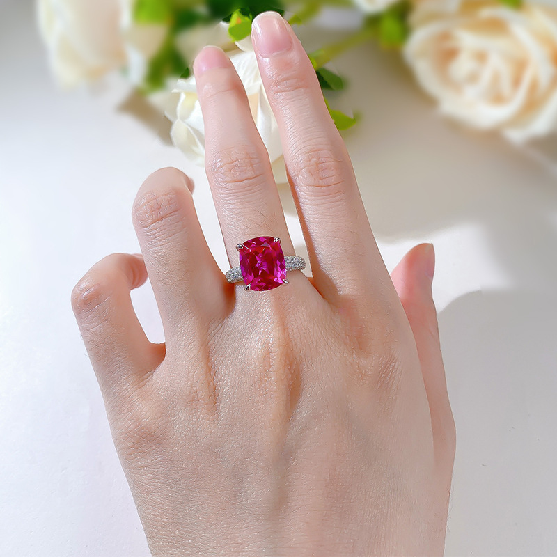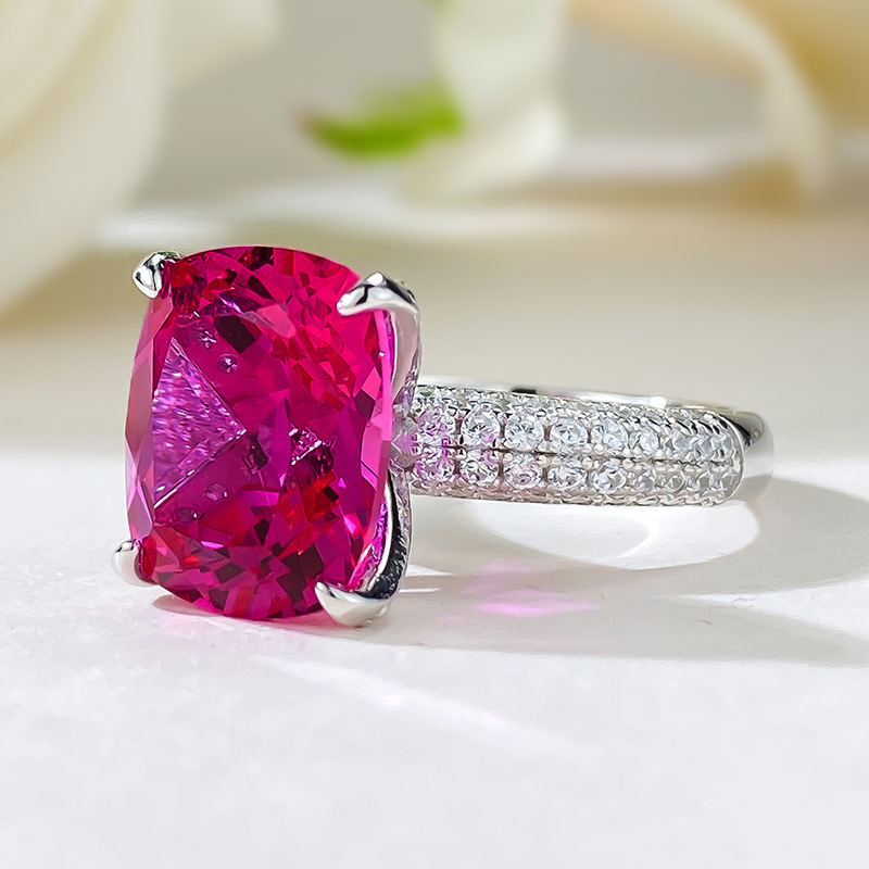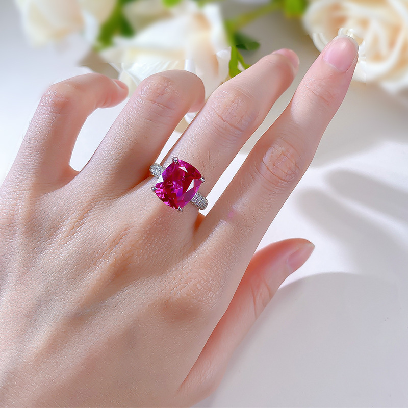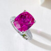 【S925銀鍍白金】奢華盧比來10*12mm玫紅色高碳鑽戒指