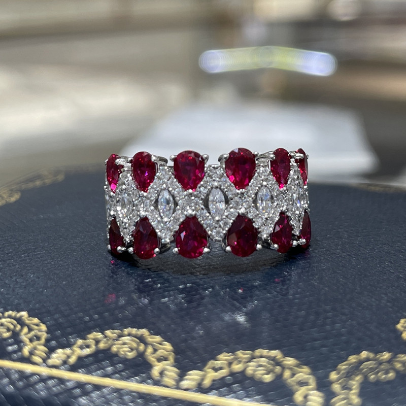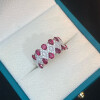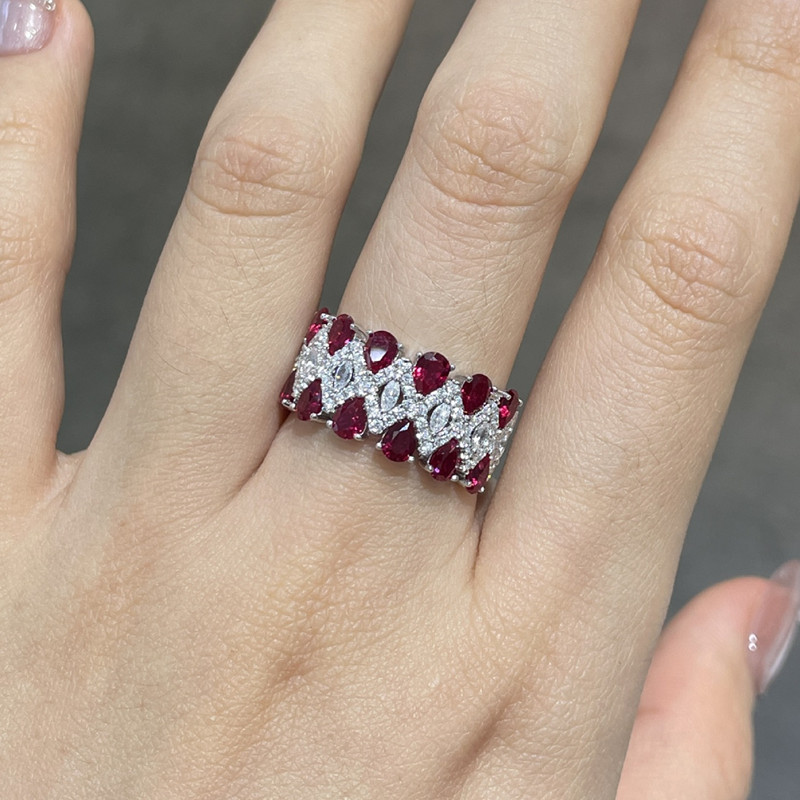 【S925銀鍍白金】培育鴿血紅寶石高碳鑽滿鑽戒指