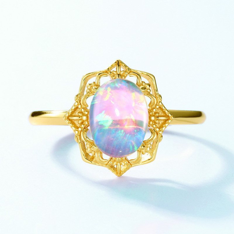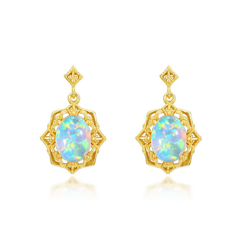 【S925銀鍍金】復古宮廷風蛋形歐泊項鏈/耳環/戒指