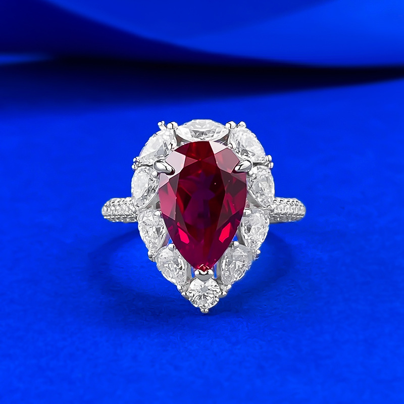 【S925銀鍍白金】8*12mm水滴梨形馬眼鑽圍鑲戒指