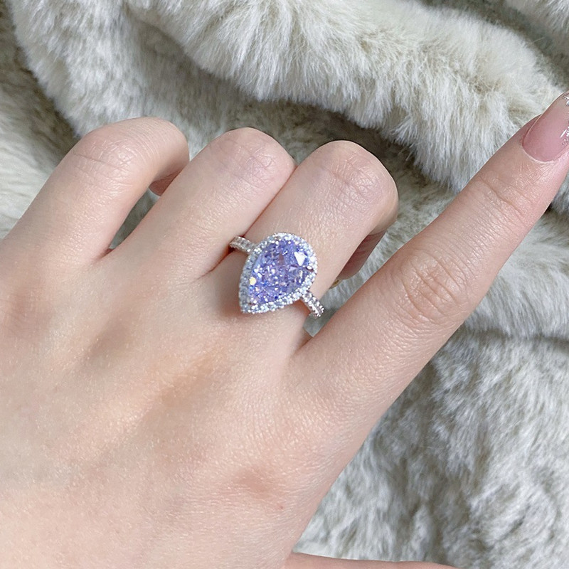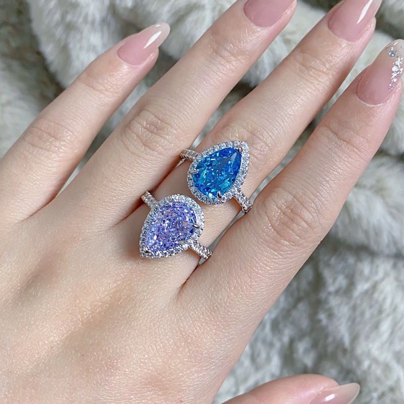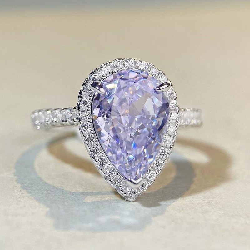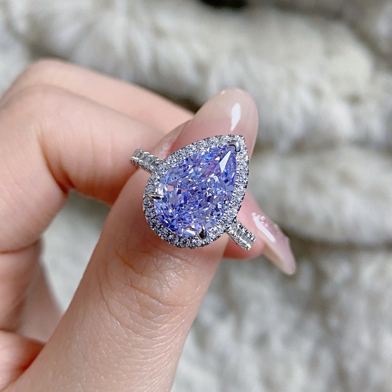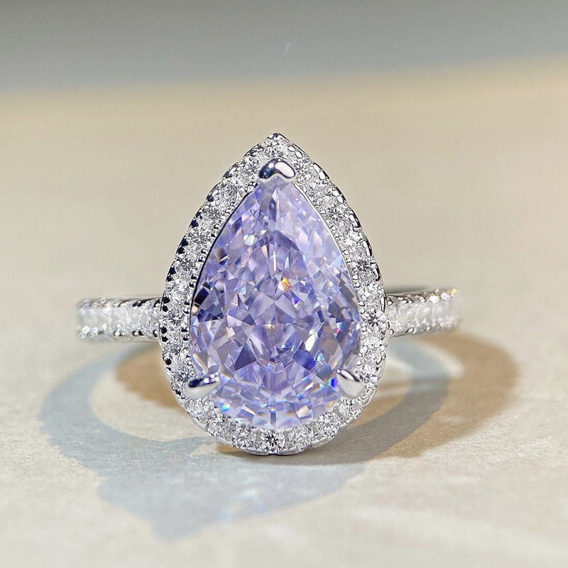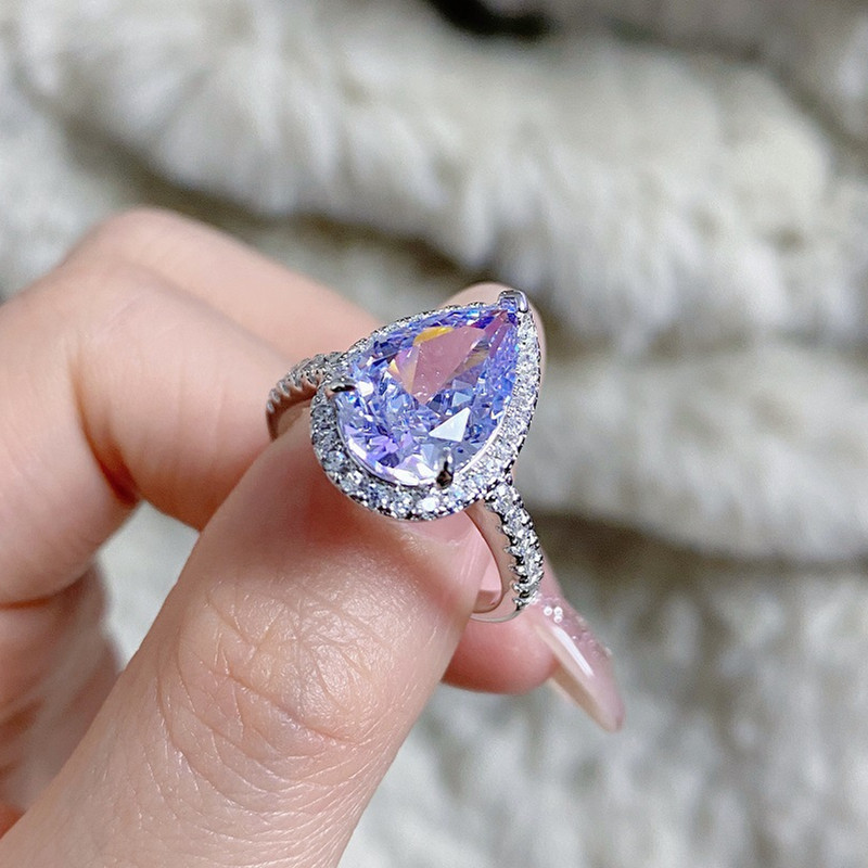 【S925銀鍍白金】7克拉梨形水滴高碳鑽戒指