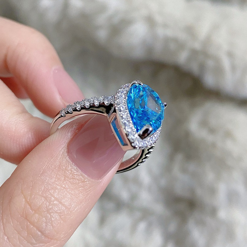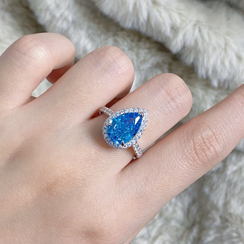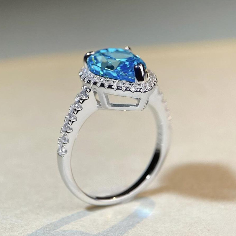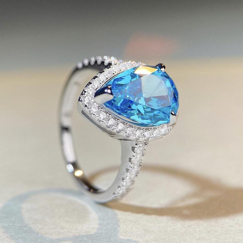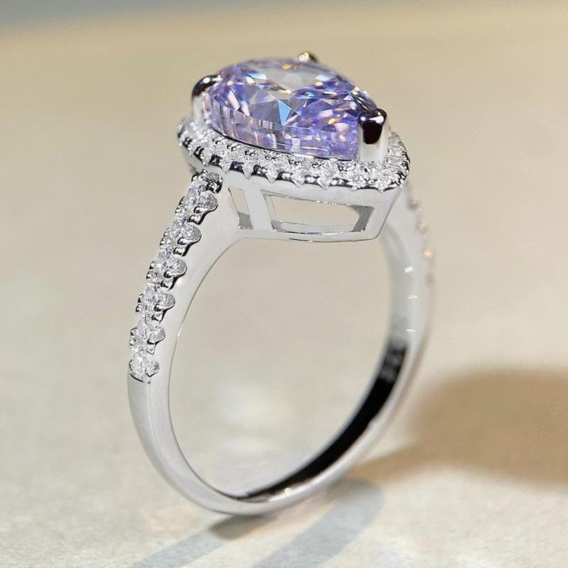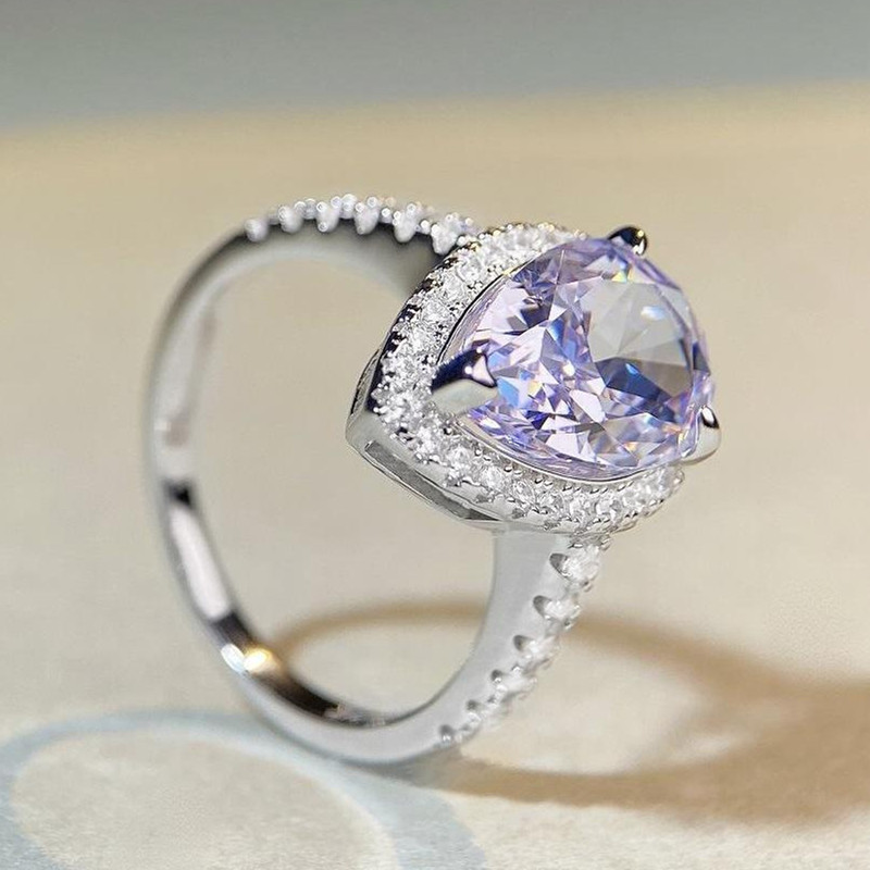【S925銀鍍白金】7克拉梨形水滴高碳鑽戒指