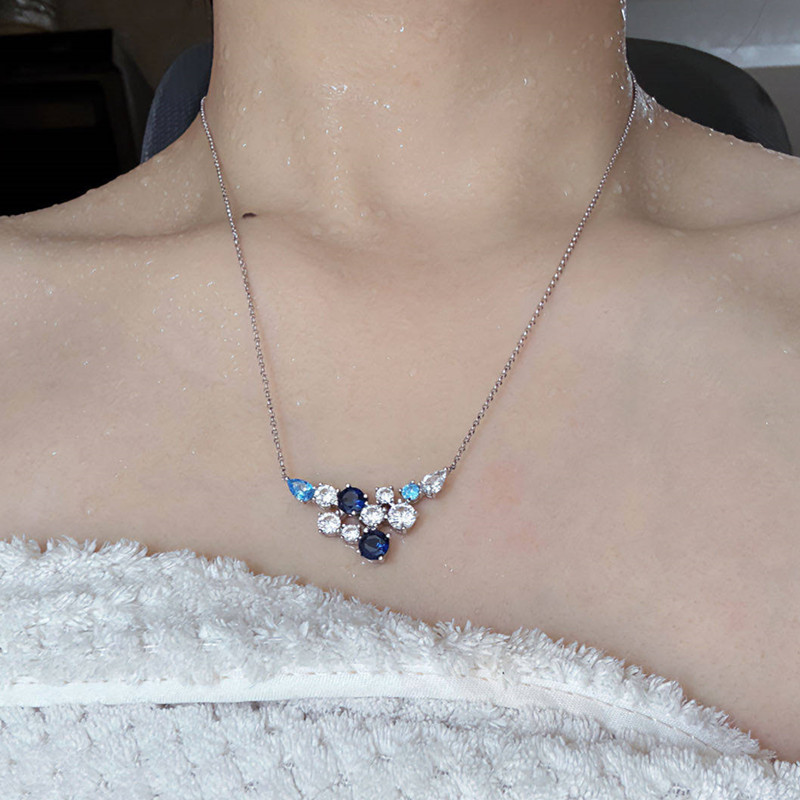 【S925銀鍍白金】繁星培育藍白鑽項鏈
