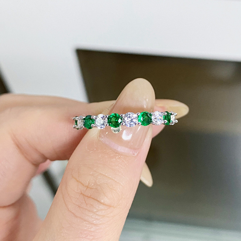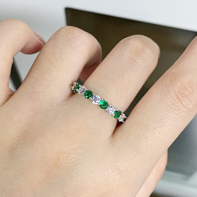 【S925銀鍍白金】繽紛糖果色高碳鑽間色排戒戒指