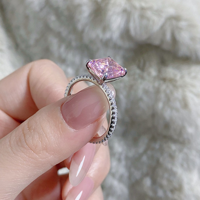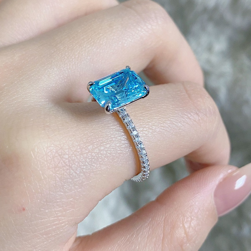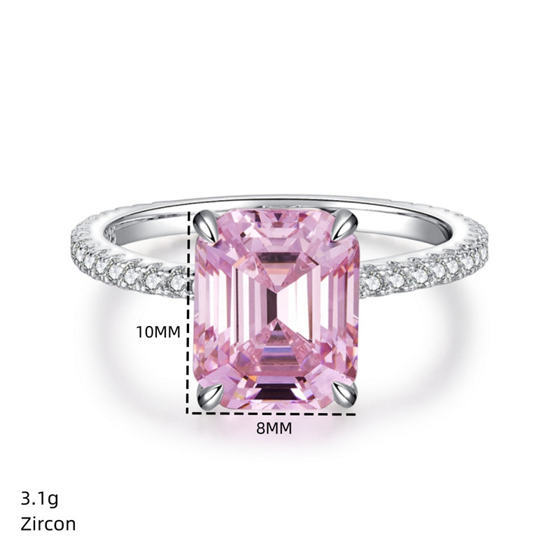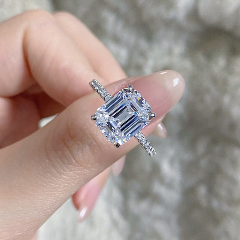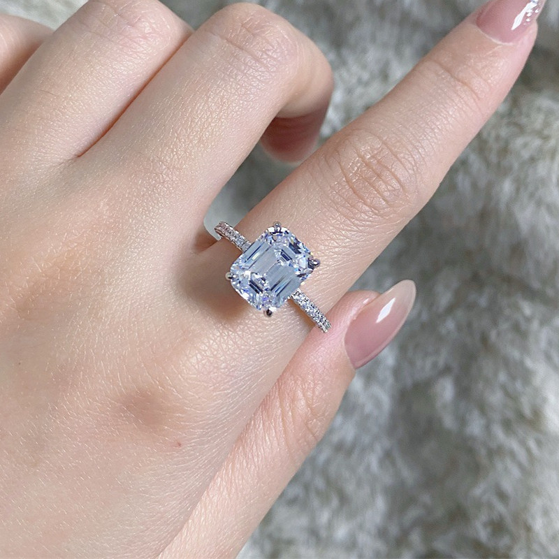 【S925銀鍍白金】4克拉祖母綠切8*10mm培育鑽戒指