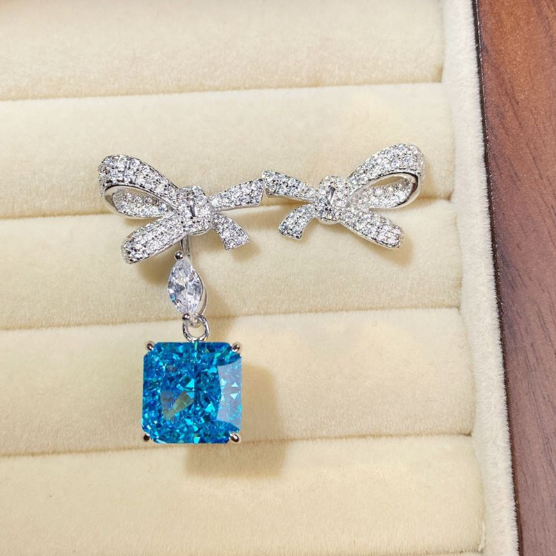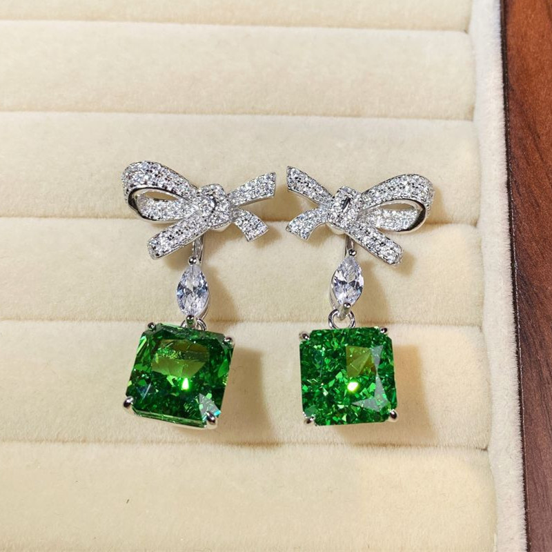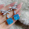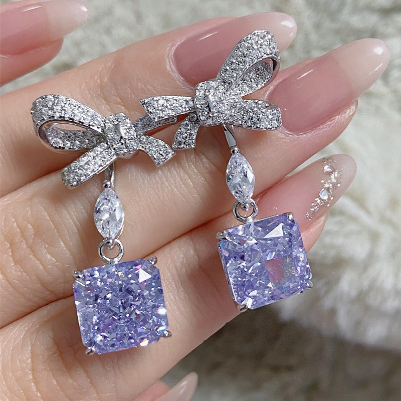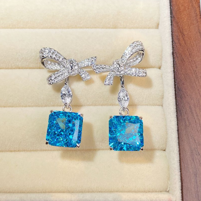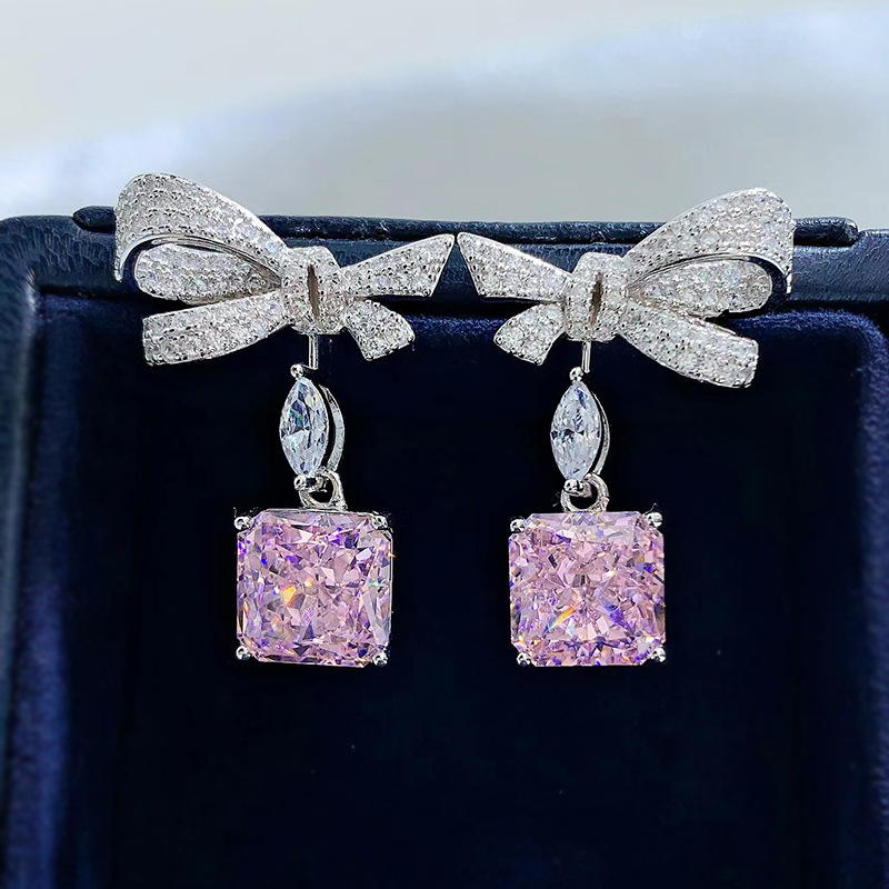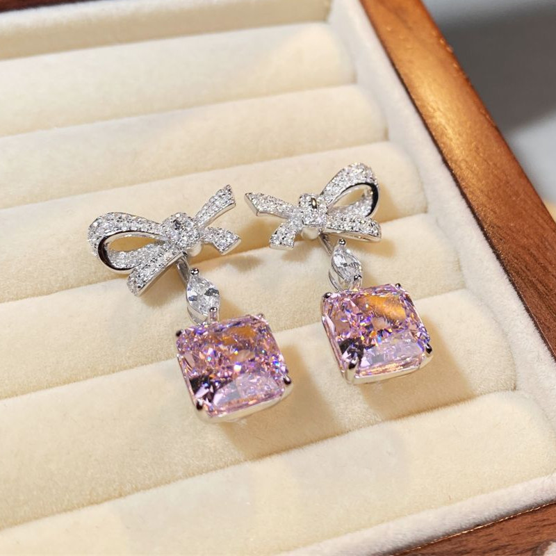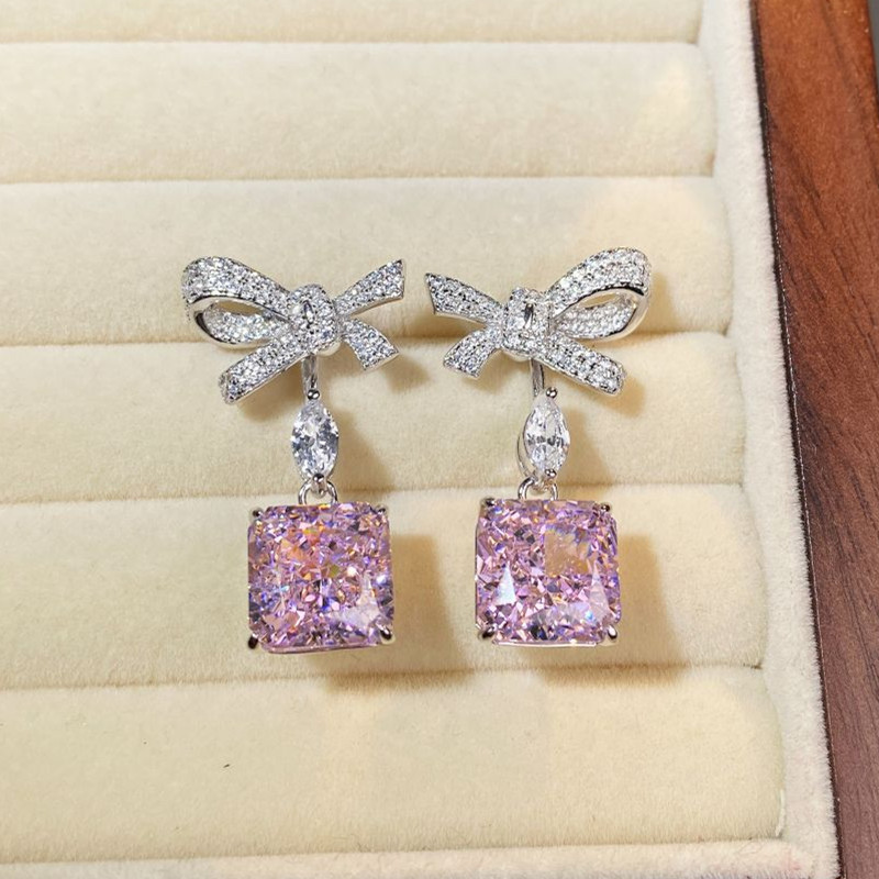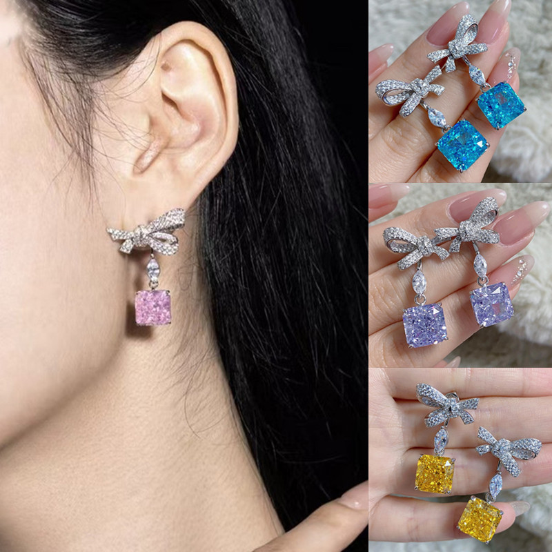 【S925銀鍍白金】冰花切方形高碳鑽可拆卸兩戴蝴蝶結耳環