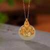 【天然玉石】鳳凰和田玉平安扣S925銀鍍金頸鏈