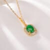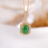 【天然玉石】蛋型翡翠方牌S925銀鍍金項鏈