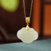 【天然玉石】和田玉吉祥如意S925銀鍍金項鏈26*21mm