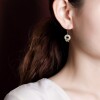 【天然玉石】平安扣蘭花S925銀鍍金耳環