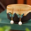【天然珍珠】淡水珍珠琺瑯蝴蝶S925銀鍍金耳環