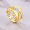 【莫桑鑽】高奢感交叉排鑽意大利拉絲七層電鍍厚金戒指