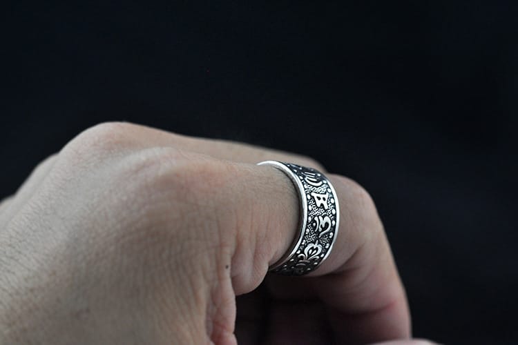 【S999純銀】六字真言心經開口戒指10-24號可調節
