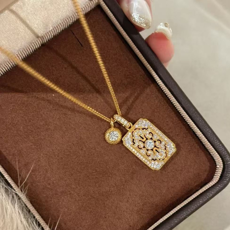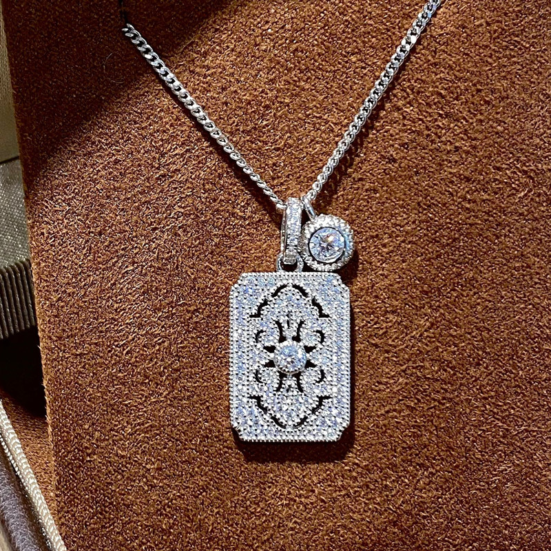 【S925銀鍍金】金銀兩色滿鑽無事牌項鏈