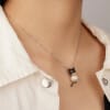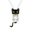 【貝珠】黑白小貓咪10mm貝珠S925銀鍍金項鏈40+5CM
