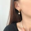 【天然珍珠】法式菱格7mm米珠S925銀鍍金耳環
