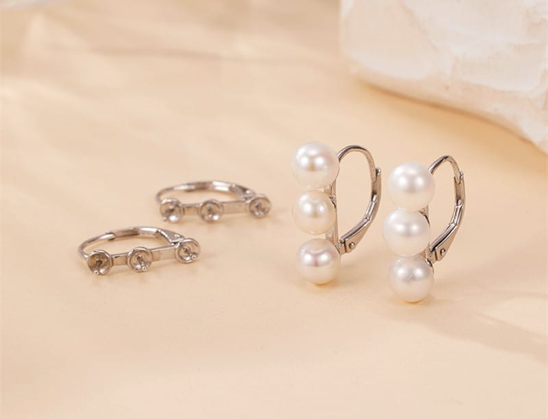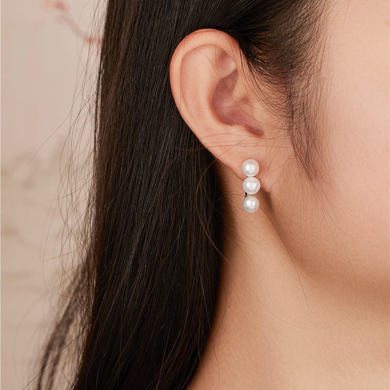 【天然珍珠】三珠平衡木6.5mm饅頭珠S925銀鍍金耳環