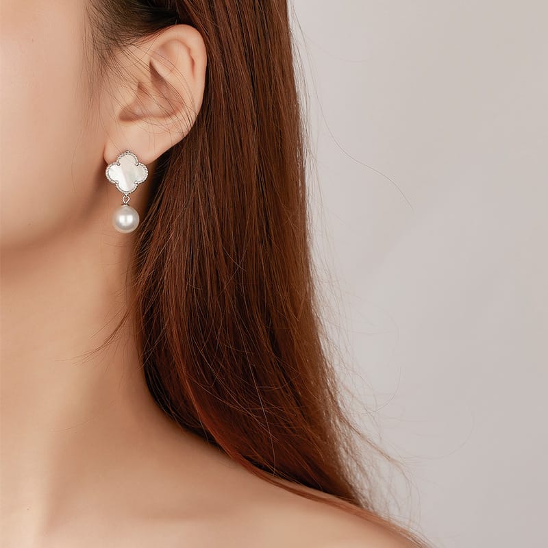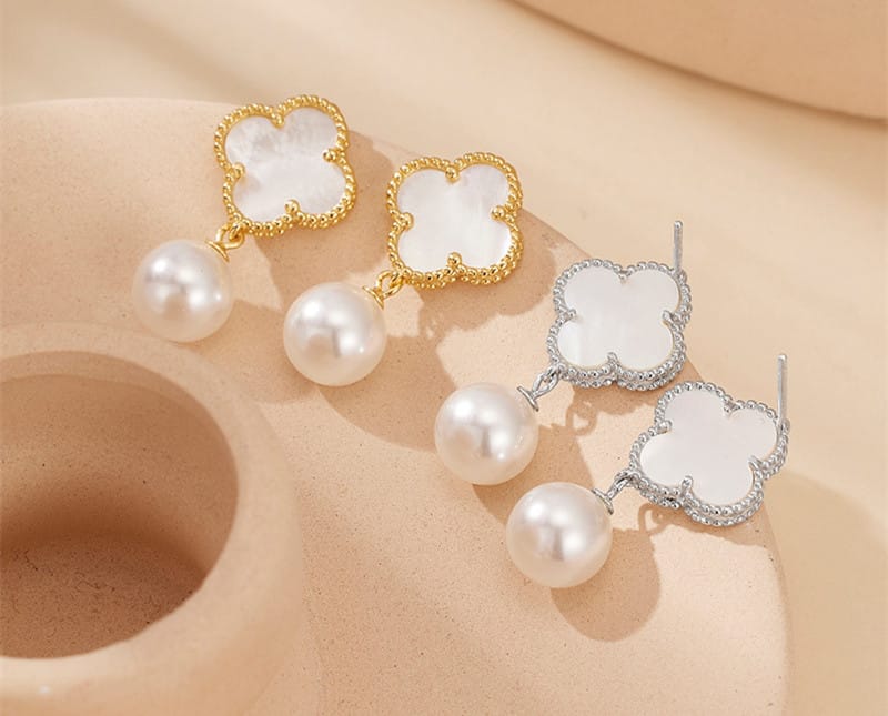 【貝珠】10MM貝珠四葉草S925銀鍍金耳環