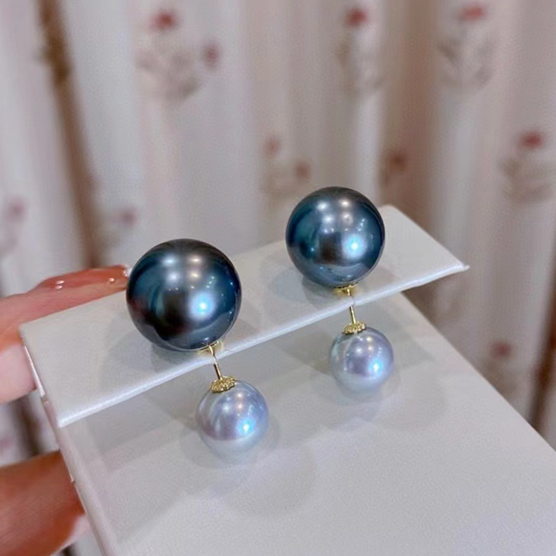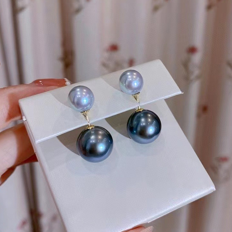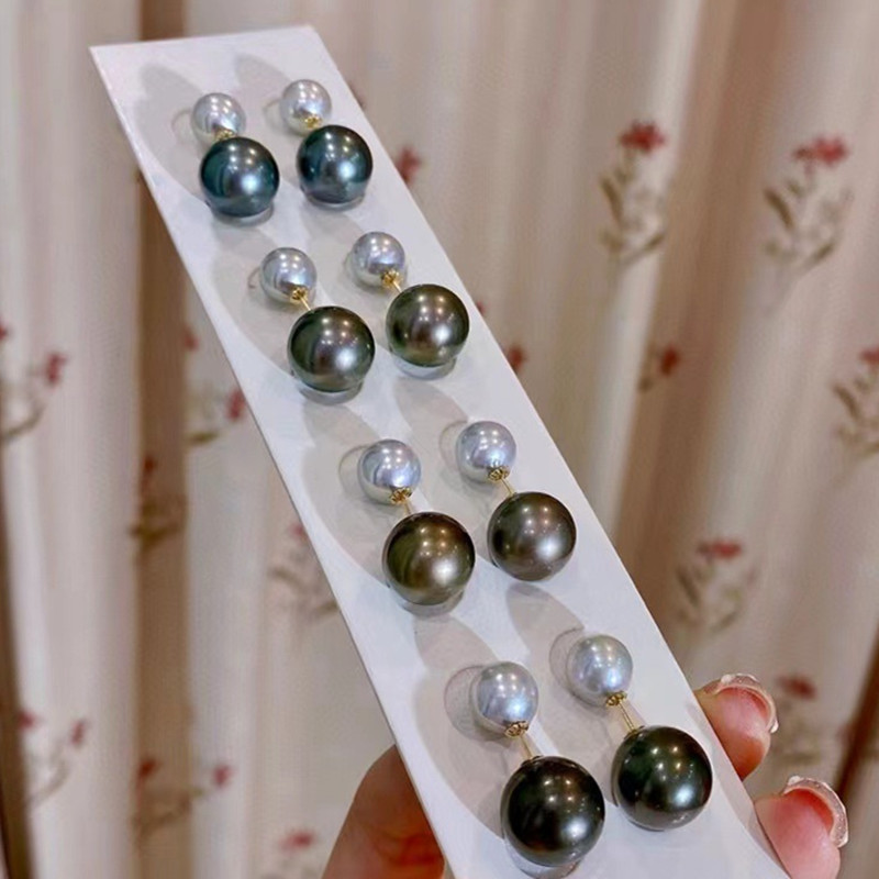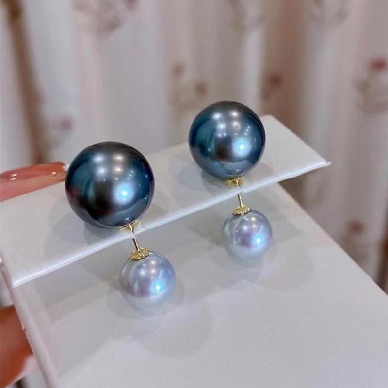 【海水珍珠】可拆卸多種戴法時尚雙珠6-7MM真多麻10-11MM大溪地黑珍珠18K金耳環